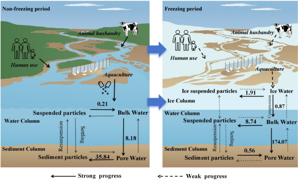 圖2 抗生素在非冰封期和冰封期多介質(zhì)的遷移與運輸