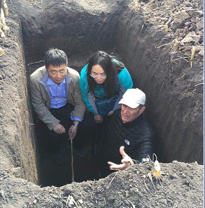 10月13日,James M.Tiedje一行參觀了海倫農(nóng)業(yè)生態(tài)實(shí)驗(yàn)站和前進(jìn)鄉(xiāng)勝利村試驗(yàn)基地。韓曉增介紹了海倫站發(fā)展歷史和黑土保護(hù)、休耕輪、肥沃耕層構(gòu)建、系列長(zhǎng)期定位試驗(yàn)等方面取得的重要科研成果以及前進(jìn)鄉(xiāng)勝利村大豆-玉米-西瓜-復(fù)種飼料(綠肥)油菜、基于肥沃耕層構(gòu)建的米豆高效輪作、大豆高效輪作等多種黑土地保護(hù)利用模式的經(jīng)濟(jì)效益,雙方就共同關(guān)注的黑土方面的科學(xué)問題開展了詳細(xì)的討論,James M.Tiedje充分肯定了海倫站在黑土保護(hù)方面取得的成績(jī)。