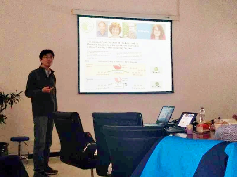 報告會上,傅永福研究員做了題為“通過花期的精細調(diào)節(jié)提高大豆產(chǎn)量”的學(xué)術(shù)報告,介紹了通過開花期基因表達的精細調(diào)節(jié)提高大豆產(chǎn)量進行分子設(shè)計育種的最新研究進展。安海龍教授做了題為“禾本科植物開花時間性狀形成分子基礎(chǔ)的研究”的學(xué)術(shù)報告,介紹了利用Ac-Ds系統(tǒng)創(chuàng)造小麥和玉米突變?nèi)后w的工作,并以二穗短柄草為例介紹了利用模式植物研究指導(dǎo)作物育種的工作。董志誠研究員做了題為“植物基因表達的表觀調(diào)控”的學(xué)術(shù)報告,介紹了植物表觀遺傳學(xué)調(diào)控的最新研究成果,為利用表觀遺傳新技術(shù)解析調(diào)控作物重要農(nóng)藝性狀提供了新的思路。范三紅副教授做了題為“植物蛋白質(zhì)三維結(jié)構(gòu)解析與功能分析”的學(xué)術(shù)報告,介紹了植物蛋白質(zhì)結(jié)構(gòu)研究的最新進展,展示了將新的研究技術(shù)用于深入解析重要基因功能的范例。康海岐副研究員做了題為“水稻早花時基因在育種中的應(yīng)用”的學(xué)術(shù)報告,講解了如何利用水稻早花基因雜交選育出高產(chǎn)、抗病的水稻新品種。專家精彩的報告引起了現(xiàn)場人員的熱烈討論。