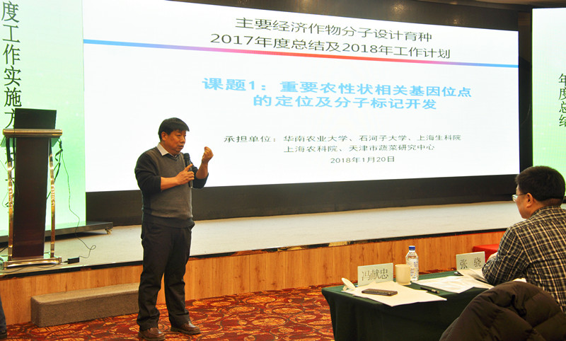 馮獻忠匯報了項目概況、2017年度項目研究進展、2018年度項目實施方案、項目經費執行情況、項目組織管理情況及項目中存在的問題及對策等情況;天津市蔬菜研究中心魏愛民研究員、河南大學的張驍教授、馮獻忠研究員、華南植物園的區永祥研究員和陜西省雜交油菜研究中心的穆建新研究員分別代表五個課題匯報了2017年度課題總結及2018年度課題工作計劃實施方案。針對各課題的匯報情況,項目組開展了專題討論研究,進一步完善了項目和課題的實施方案。