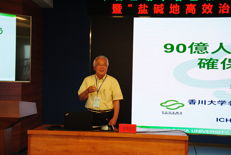 18日上午,論壇開幕式結束后,傅廷棟院士、尹偉倫院士、林鴻宣院士和陳學庚院士結合自身的研究領域、研究方向及取得的科研成果,分別就“鹽堿地種植飼料(綠肥)油料的研究與示范”、“植物耐旱、耐鹽能力的定量評價技術”、“水稻耐鹽性狀的遺傳調控機理”和“新疆兵團現代農業發展與展望”做了精彩的特邀學術報告。兩位特邀外國專家一井眞比古教授和Tibor Tóth研究員也分別以“如何確保未來90億人口的糧食?”和“Improvement of salt-affected soils in the 21st century”為題做了精彩的大會報告。