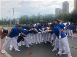 隨后,我所隊員還參加 “齊頭并進”多人多足比賽, “凝心聚力”拔河比賽和 “同心協力”呼啦圈過山車。全體隊員共同配合,齊心協力,單項趣味比賽均獲得總分第二的好成績,賽后歡聲笑語此起彼伏。