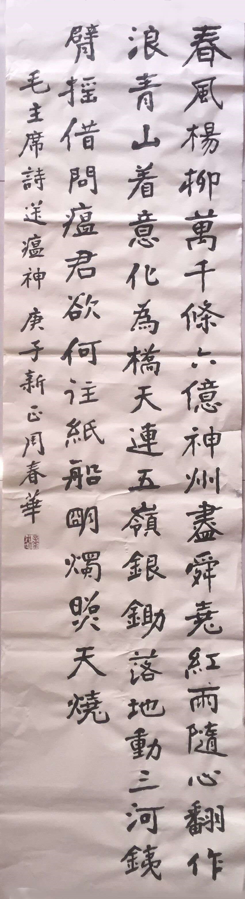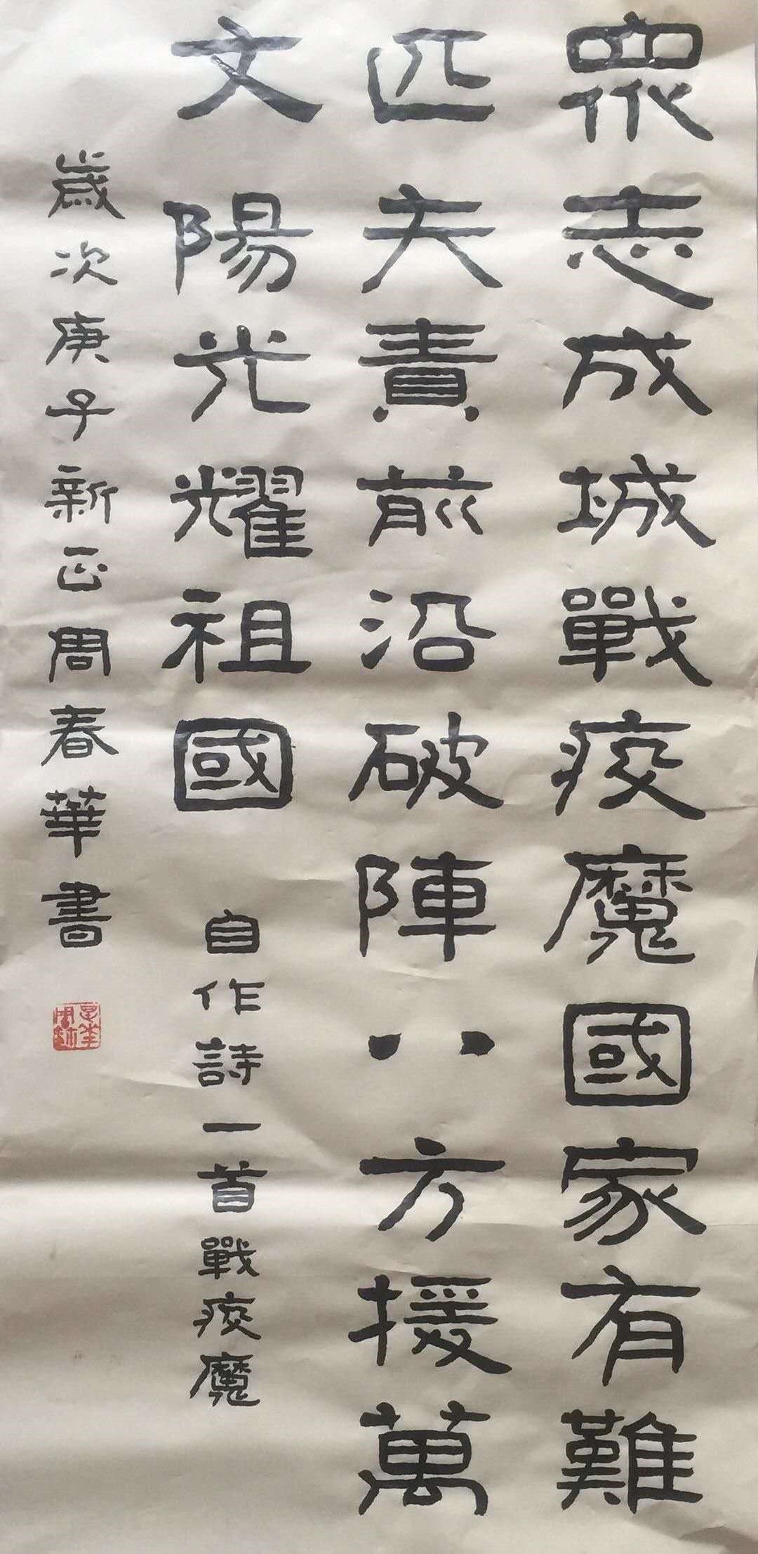 荊楚祥和,毒魔突起,風聲鶴唳新春里。巨城武漢一時封,全民抗疫宏猷啟。