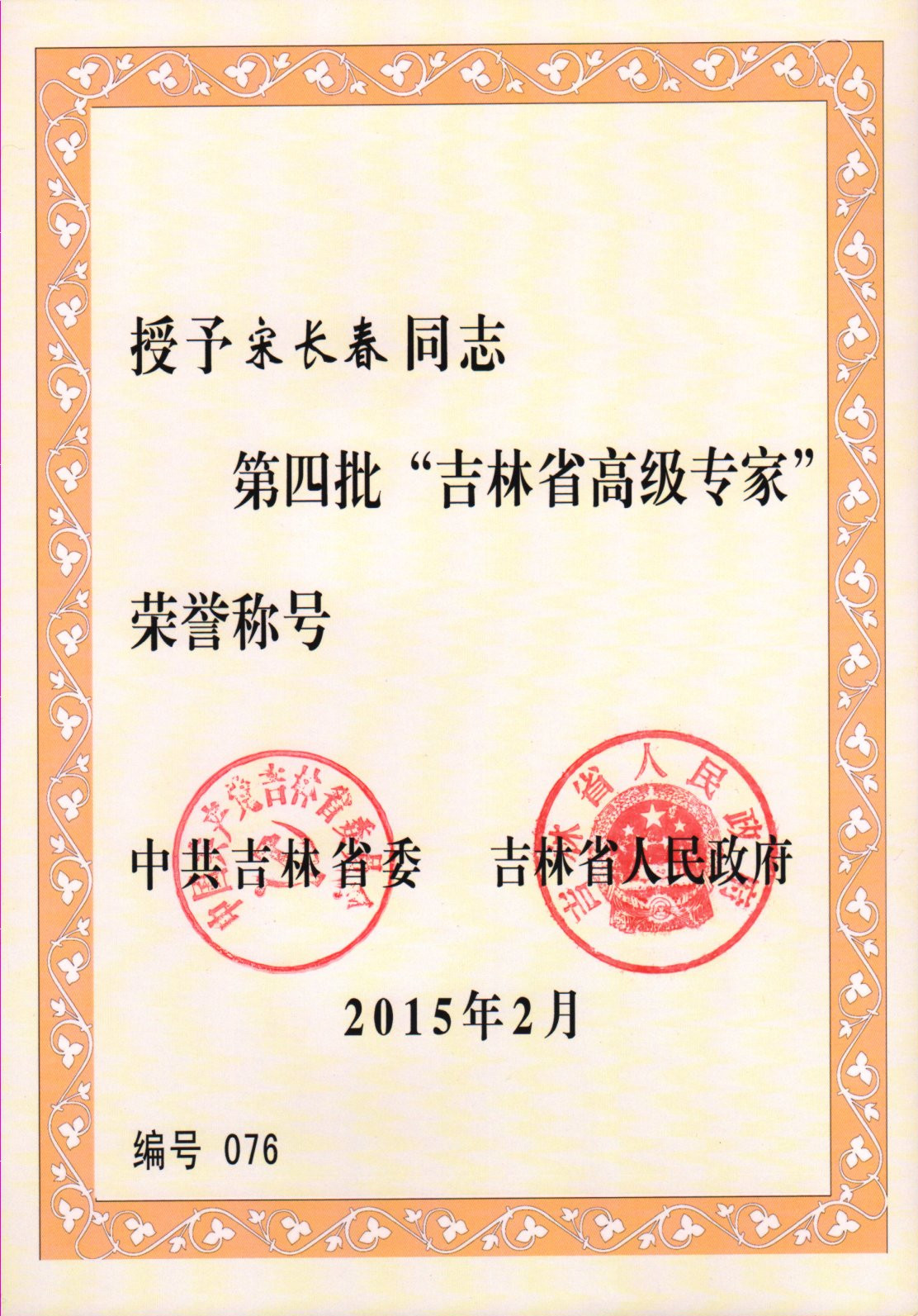 我所宋長春研究員獲第四批“吉林省高級專家”榮譽稱號