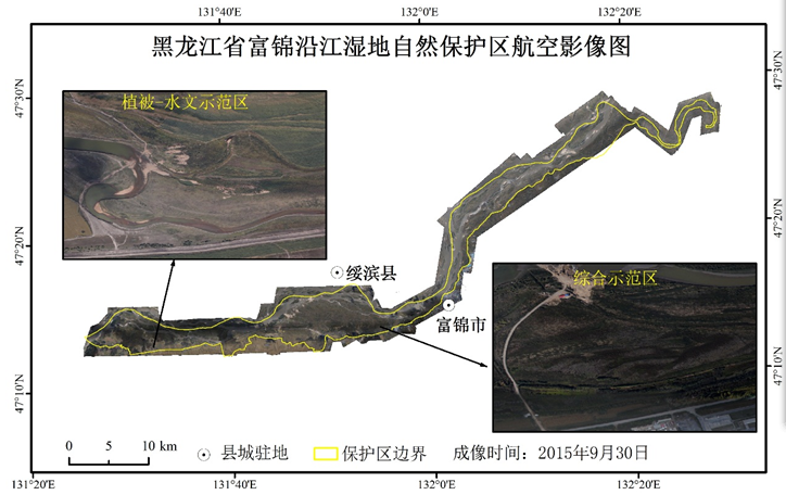 我所承擔的國家水體污染控制與治理科技重大專項課題“松花江下游沿江濕地生態(tài)功能與生物多樣性恢復技術集成與綜合示范”(2012ZX07207-004)于2015年9月下旬,在課題示范區(qū)—富錦沿江濕地保護區(qū)開展無人機航拍工作,為沿江濕地恢復效果與下游濕地潛力評估提供高精度的遙感數據源。