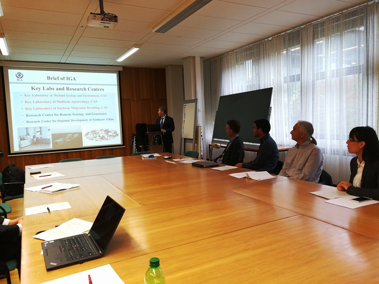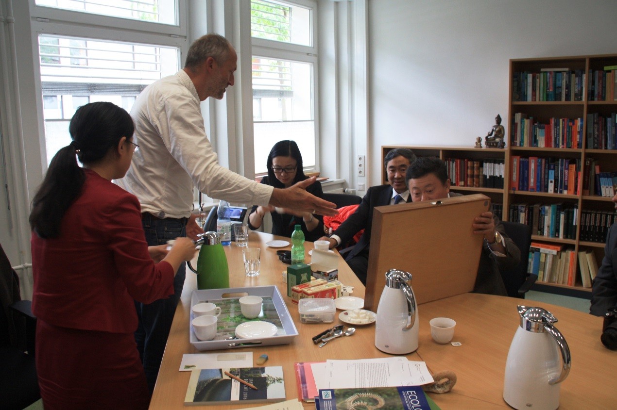 9月21日,代表團(tuán)一行訪問(wèn)了哥廷根大學(xué)林業(yè)科學(xué)學(xué)院,院長(zhǎng)EdzoVeldkamp教授對(duì)我所代表團(tuán)來(lái)訪表示了熱烈歡迎。何興元所長(zhǎng)在座談會(huì)上做了關(guān)于“Research Program in IGA, CAS: An Overview”的報(bào)告,介紹了我所概況、學(xué)科領(lǐng)域、研究平臺(tái)及對(duì)外合作交流情況。林學(xué)院Kerstin Wiegand教授、Oliver Gailing教授、HolgerKreft教授、Peter Annigh?fer博士分別作了專題報(bào)告,雙方針對(duì)相關(guān)研究?jī)?nèi)容進(jìn)行了廣泛而深入的探討。德方科學(xué)家對(duì)我所的研究平臺(tái)及研究?jī)?nèi)容非常感興趣;在開(kāi)展有關(guān)研究領(lǐng)域、人才交流、項(xiàng)目申請(qǐng)、野外平臺(tái)建設(shè)等方面達(dá)成共識(shí),計(jì)劃近期簽署科技合作協(xié)議。