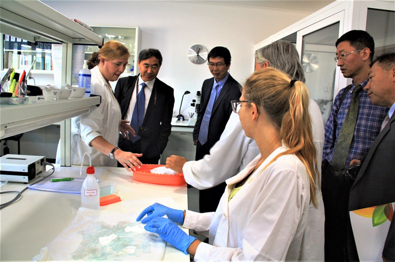 9月20日-9月21日,代表團(tuán)一行應(yīng)哥廷根大學(xué)校長(zhǎng)Ulrike Beisiegel邀請(qǐng),訪問(wèn)了德國(guó)哥廷根大學(xué),并與動(dòng)物生態(tài)研究所、林業(yè)科學(xué)學(xué)院等研究機(jī)構(gòu)負(fù)責(zé)人及相關(guān)科學(xué)家進(jìn)行了深入交流。訪問(wèn)期間,何興元所長(zhǎng)率團(tuán)與哥廷根大學(xué)校長(zhǎng)Ulrike Beisiegel教授進(jìn)行了會(huì)談。會(huì)談?dòng)筛缤⒏髮W(xué)國(guó)際處處長(zhǎng)UweMuuss教授主持,動(dòng)物生態(tài)研究所所長(zhǎng)Stefan Scheu教授和我所洪堡學(xué)者孫新博士參加會(huì)談。雙方介紹了各自單位概況,Beisiegel校長(zhǎng)特別強(qiáng)調(diào)了近年來(lái)該校與中國(guó)開(kāi)展的廣泛科技合作,期待未來(lái)能在生態(tài)保護(hù)、環(huán)境科學(xué)等領(lǐng)域與我所開(kāi)展實(shí)質(zhì)性合作與交流;雙方也就青年人才培養(yǎng)、項(xiàng)目合作、聯(lián)合培養(yǎng)研究生等方面達(dá)成了初步意向。會(huì)談結(jié)束后,在動(dòng)物生態(tài)研究所所長(zhǎng)Stefan Scheu教授的陪同下,代表團(tuán)訪問(wèn)了動(dòng)物生態(tài)研究所,Stefan Scheu教授高度重視與我所土壤動(dòng)物研究領(lǐng)域的合作交流,并愉快地接受了我所的回訪邀請(qǐng)。