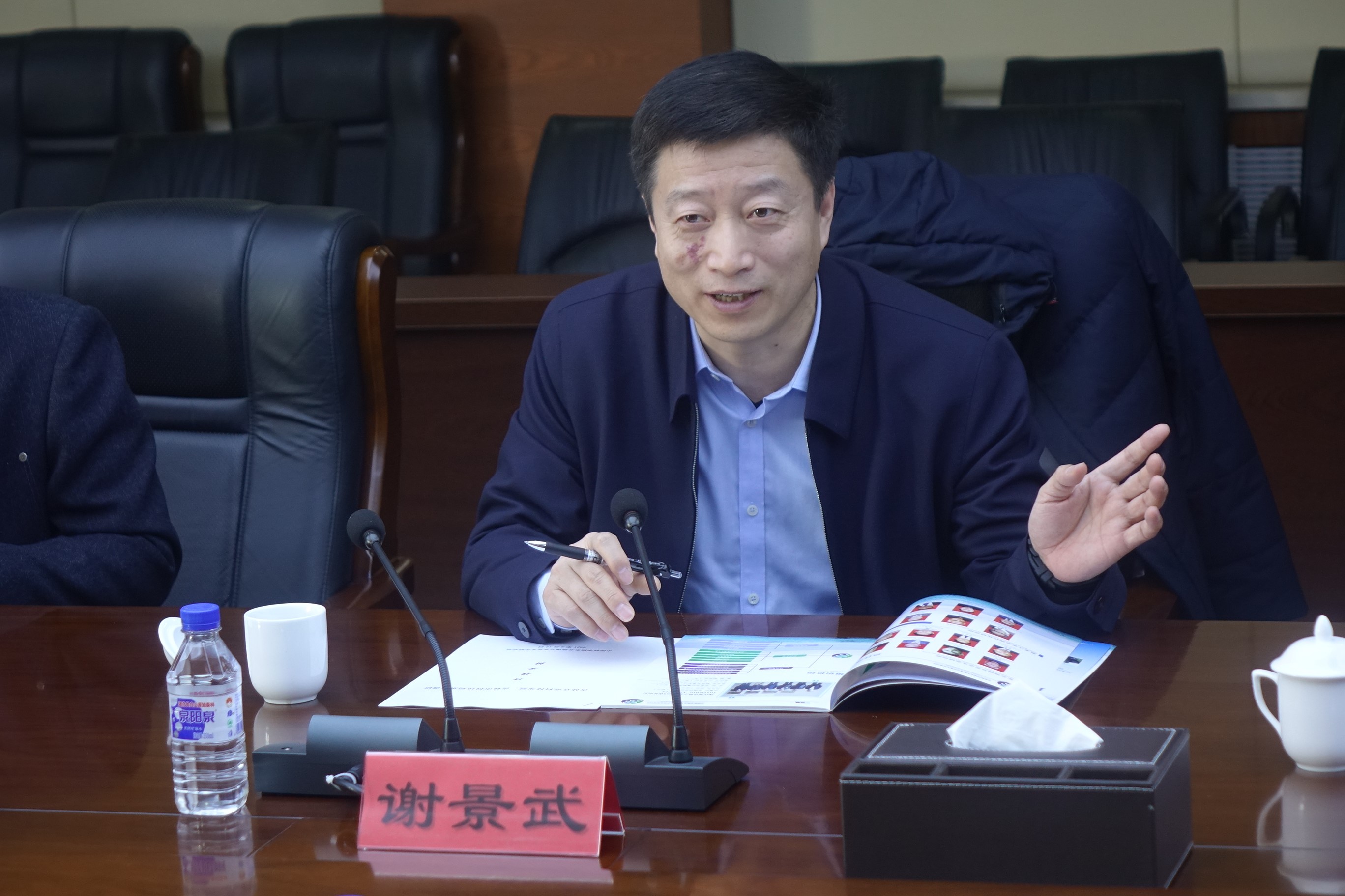 東北地理所所長姜明、書記蘇陽以及相關部門負責人親切接待并參加座談交流。姜明代表研究所致歡迎詞并對謝景武一行的到訪表示熱烈歡迎。科研計劃處副處長崔明星詳細介紹了研究所的基本情況、人才結構、學科部署、科研進展和成果轉化工作。