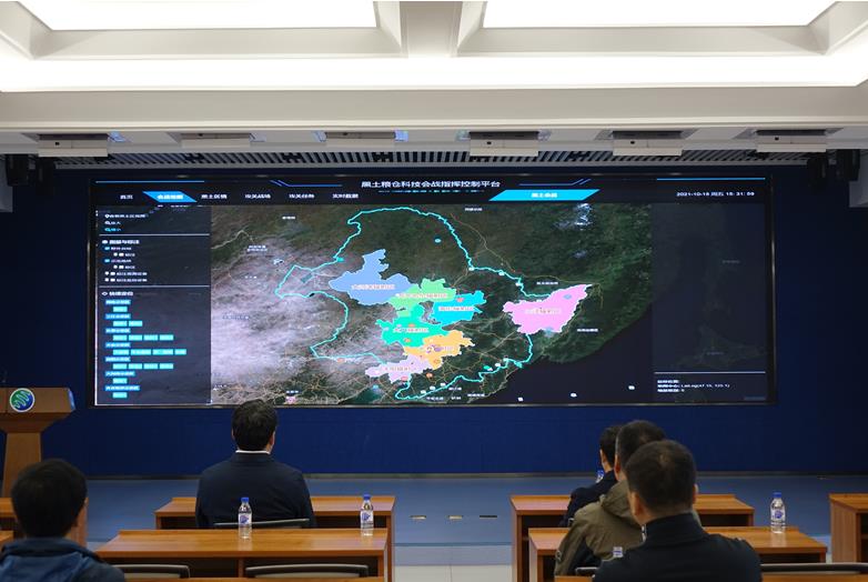 胡兆民一行首先調研了大豆分子設計育種重點實驗室、中科院黑土區農業生態重點實驗室的相關工作。于慧、張延博士及王志春研究員針對本領域相關科研進展和主要發展前景進行了介紹;隨后共同參觀了“黑土糧倉”科技會戰指揮中心,從信息化平臺上觀看并了解各示范區的建設進展狀況。