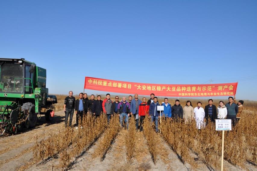 通過(guò)現(xiàn)場(chǎng)考察和測(cè)產(chǎn),專(zhuān)家組一致認(rèn)為測(cè)產(chǎn)田塊示范的大豆新品系具有較高的抗鹽堿性,配合品種專(zhuān)用的抗鹽堿栽培措施可以實(shí)現(xiàn)在大安地區(qū)蘇打鹽堿地種植,增產(chǎn)效果顯著;該項(xiàng)工作得到了中國(guó)科學(xué)院重點(diǎn)部署項(xiàng)目、中科院戰(zhàn)略性先導(dǎo)專(zhuān)項(xiàng)項(xiàng)目的資助。