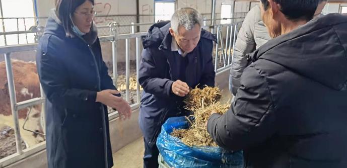 2021年12月14日到15日,吉林省畜牧局飼料飼草處處長張友良和關百軍一行到“黑土糧倉”科技會戰長春示范區公主嶺示范基地和長嶺草地農牧生態研究站就菌酶協同發酵黃貯秸稈技術進行現場調研,中國科學院東北地理與農業生態研究所梁愛珍研究員、鐘榮珍研究員和陳國雙高級工程師陪同調研。