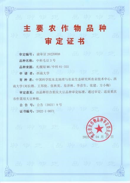 東北地理所鮮食大豆中科毛豆3號(hào)通過(guò)重慶市大豆品種審定