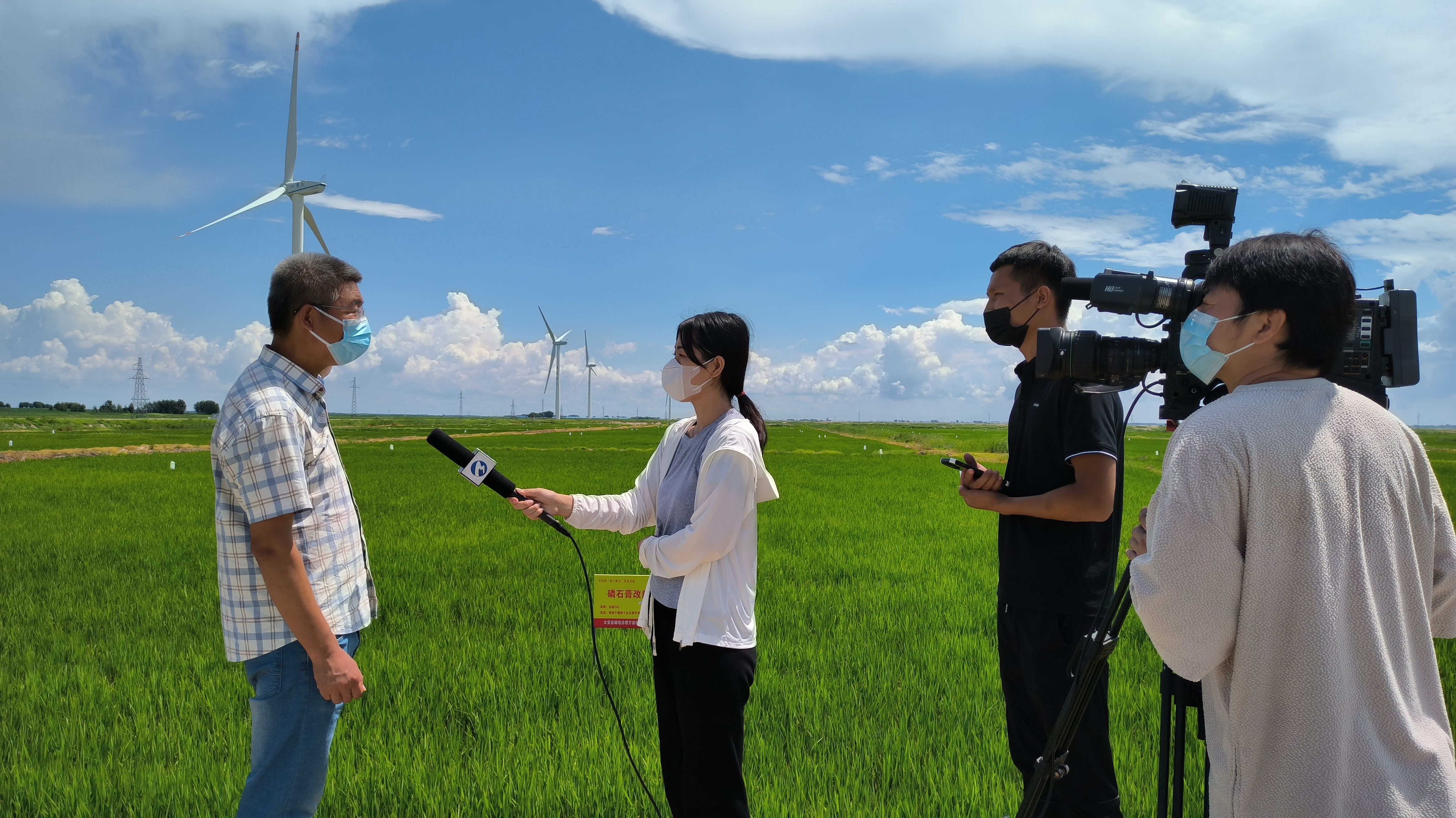 白城市電視臺到大安鹽堿地水田萬畝示范區開展專題報道