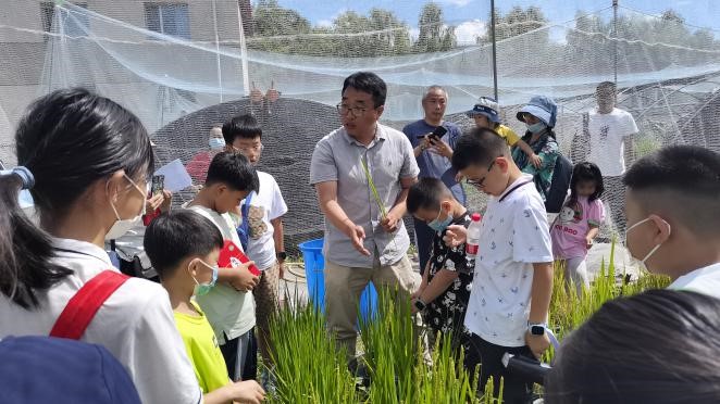 在盆栽實(shí)驗(yàn)場(chǎng),沙漢景博士詳細(xì)講解了水稻植株的結(jié)構(gòu)和不同生長(zhǎng)時(shí)期的特性,帶領(lǐng)同學(xué)們認(rèn)識(shí)了不同發(fā)育時(shí)期水稻植株的生長(zhǎng)特性;王樂博士向同學(xué)們展示了不同品種大豆植株的生長(zhǎng)性狀,介紹了野生大豆與常規(guī)大豆的區(qū)別,并認(rèn)真觀察了開花期的大豆植株特征。同學(xué)們通過近距接觸農(nóng)作物,了解東北主要農(nóng)作物的生長(zhǎng)史,切身體會(huì)到了日常食用的稻米和豆制品的來之不易,并表示今后會(huì)更加愛惜糧食,減少浪費(fèi),從我做起。此次活動(dòng)得到了參與家庭的一致好評(píng)。