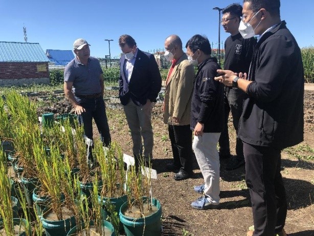 8月23日下午,考察團一行考察了項目示范區之一的牛心套保國家濕地公園,文波龍博士介紹了該項目在牛心套保綜合示范區的進展,包括鹽堿稻田退水工程濕地消納技術、以養促改蘇打鹽堿稻田綜合利用技術,以及吉林省GEF項目核心示范區牛心套保國家濕地公園納入中國科學院“黑土糧倉”科技會戰等方面的相關工作。