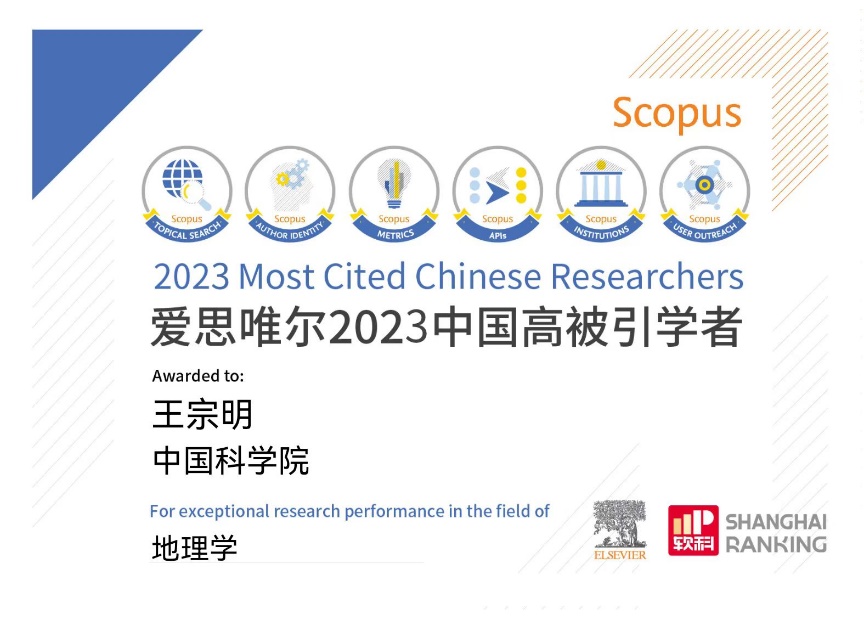 王宗明研究員連續(xù)兩年入選Elsevier“中國高被引學(xué)者”榜單