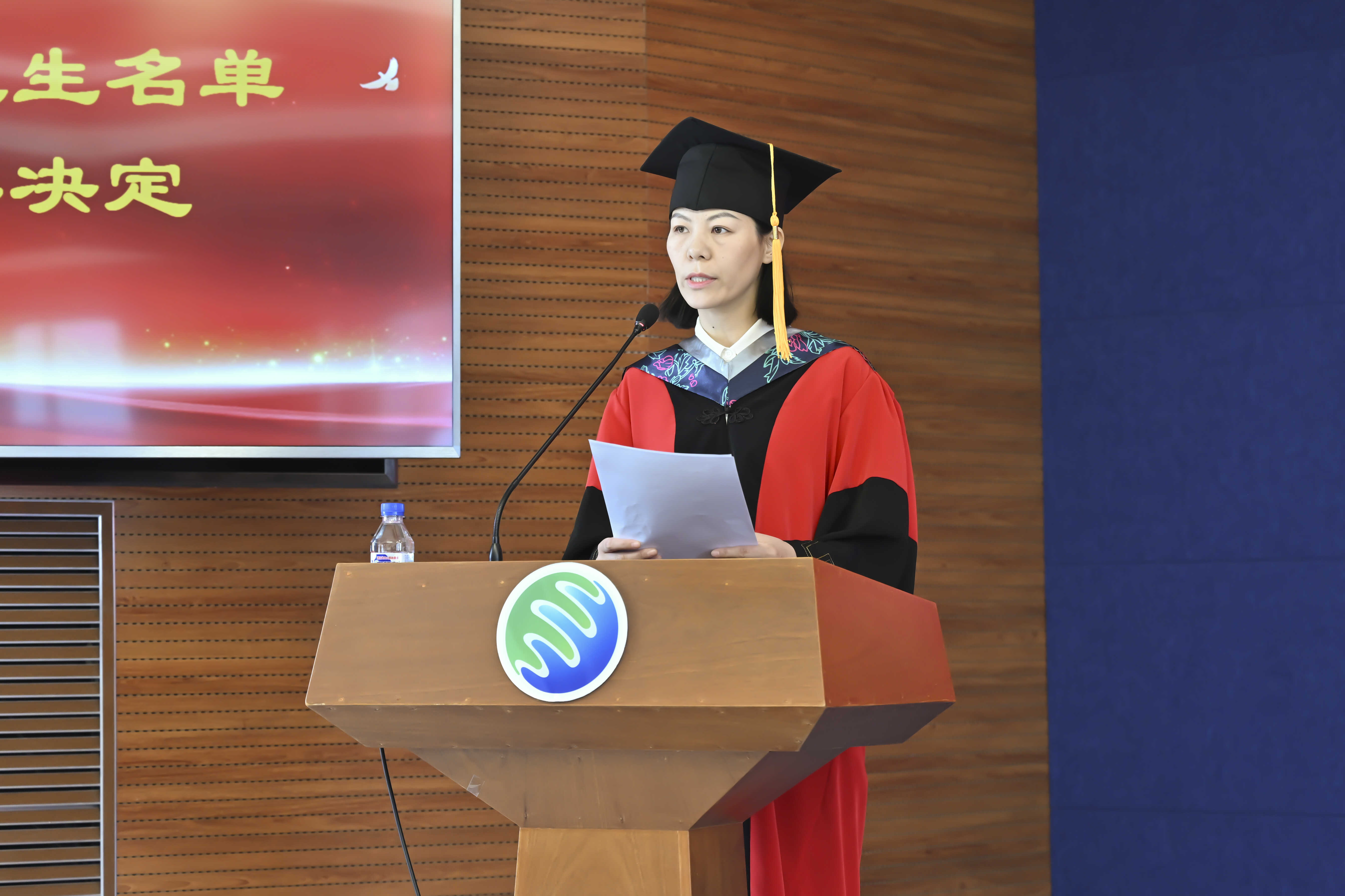 博士畢業生楊光義、碩士畢業生張舒媛代表全體博士和碩士畢業生致畢業感言。兩位畢業生代表分享了自己的學習生涯和科研感悟,并表達了對老師們的感恩之心和不舍之情。經過這段求學生涯的錘煉,在老師們的幫助下,他們在挫敗中成長,在堅持中奮發。經歷過這段美好且充實的時光,在未來的工作和生活中,他們會更加自信,更加堅強,走出自己的風采,開拓出屬于自己的事業。