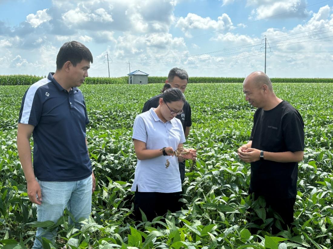 當(dāng)前東北春大豆正處于產(chǎn)量形成的關(guān)鍵時(shí)期,為了積極應(yīng)對(duì)未來可能出現(xiàn)的氣象不利條件,在農(nóng)業(yè)農(nóng)村部總體部署下,7月30日,國(guó)家大豆產(chǎn)業(yè)技術(shù)體系海倫綜合試驗(yàn)站首席專家鄒文秀研究員聯(lián)合東北早熟品種改良崗位科學(xué)家韓英鵬教授和巴彥縣農(nóng)業(yè)技術(shù)推廣中心相關(guān)科技人員深入巴彥縣巴彥港鎮(zhèn)開展“抓秋田抗災(zāi)害奪秋糧”科技支撐服務(wù),對(duì)田間土壤含水量、大豆長(zhǎng)勢(shì)、病蟲草害發(fā)生風(fēng)險(xiǎn)等進(jìn)行調(diào)研,并提出“抓秋田抗災(zāi)害奪秋糧”技術(shù)指導(dǎo)方案。