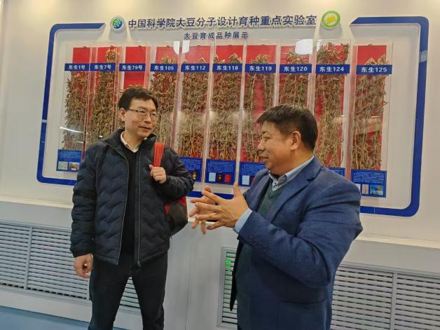 會前,金德鵬一行實地考察了研究生公寓和體育館,了解學生在所期間學習和生活條件;在農業樓聽取了鹽堿地綜合治理技術、耐鹽堿種質資源及新品種等工作進展匯報;在種質資源樓,調研了大豆分子設計育種重點實驗室,現場查看了大豆基因突變體庫、大豆分子設計育種技術體系、高通量作物表型組分析系統及“東生”系列大豆新品種選育與轉化工作;在研究所展館,聽取了研究所歷史沿革、學科布局、承擔任務、科技平臺、人才隊伍、黨建工作及發展規劃等情況的介紹;在綜合樓與我所10余位研究生代表進行了座談交流,同學們分別就培養、就業等問題進行了交流,金德鵬及各位老師也耐心做出了解答,同時鼓勵各位同學不斷加強自身能力建設,為祖國的科技事業貢獻自己的力量。