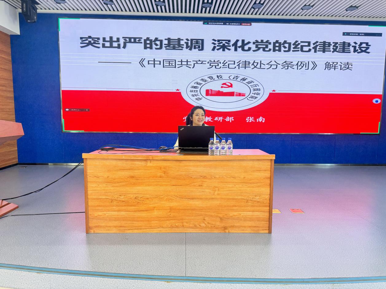 中共吉林省委黨校黨建教研部副主任張南副教授以《突出嚴(yán)的基調(diào),深化黨的紀(jì)律建設(shè)》為題作報告,系統(tǒng)闡述了《中國共產(chǎn)黨紀(jì)律處分條例》主要內(nèi)容,詳細解讀了新增和修訂的條款。報告具有很強的針對性和指導(dǎo)性,對于幫助紀(jì)檢委員理解把握《條例》的內(nèi)涵要義以及今后學(xué)好、用好《條例》,自覺增強黨性修養(yǎng),錘煉紀(jì)律作風(fēng)有著重要的作用。