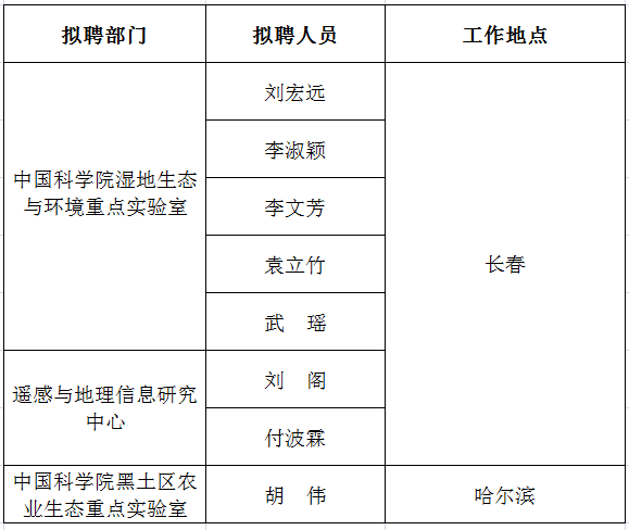 依據(jù)東北地理所公開(kāi)招聘程序,在公開(kāi)申報(bào)、資格審查、競(jìng)聘答辯、設(shè)崗招聘委員會(huì)考察評(píng)議與建議的基礎(chǔ)上,經(jīng)所領(lǐng)導(dǎo)班子集體研究決定,擬聘任劉宏遠(yuǎn)等8名同志來(lái)所工作,現(xiàn)將各崗位的擬聘人選予以公示:
