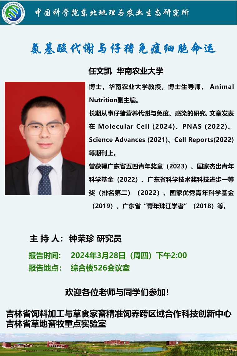 氨基酸代謝與仔豬免疫細胞命運-任文凱 教授