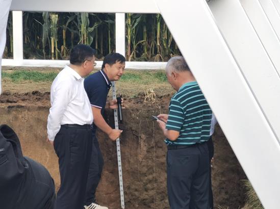 首先,中科院東北地理所關義新研究員匯報了保護性耕作梨樹模式萬畝示范區的實施情況,黑土糧倉科技會戰梨樹示范區緊緊圍繞“梨樹模式”保護性耕作技術示范推廣中的問題,從新技術的引進評估,關鍵成熟配套技術的優化集成,到綜合技術的示范推廣,進行技術的完善升級及高標準示范,并在吉林省不同生態區建立了17個院省地聯動高標準示范田,以加速保護性耕作技術的示范推廣。張小宏一行對示范區主推技術與模式、土壤剖面的黑土差異、玉米育種聯合體新品種展示等內容十分關注。