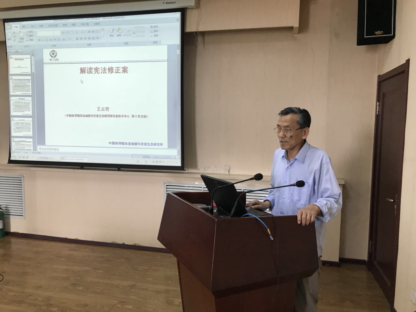 支部副書記王占哲老師利用多媒體就學習宣傳貫徹《憲法》精神文件做出詳細解讀,多媒體圖文并茂,生動活潑,使與會的老黨員深受教育。通過老黨員、老干部原原本本、認認真真學習《憲法修正案》,加深理解,聯系實際學懂弄通。