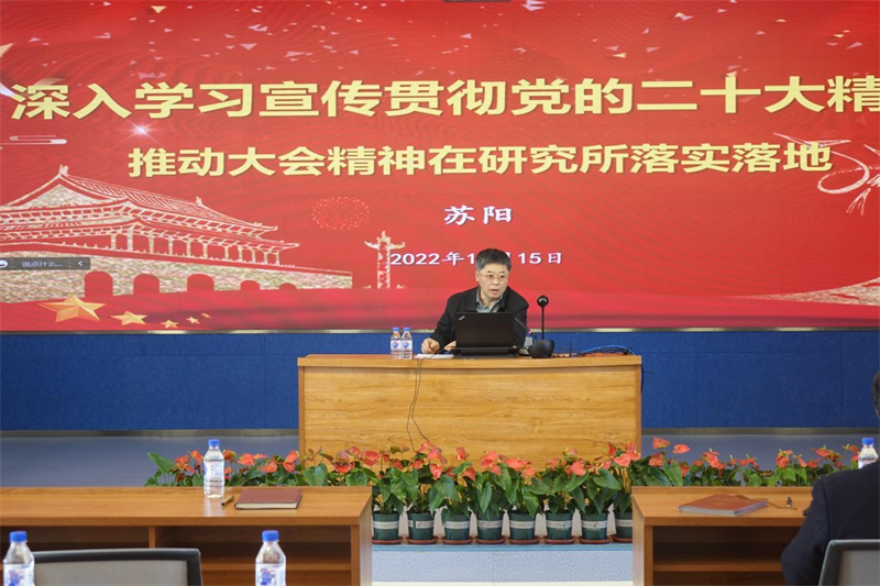 蘇陽強調,黨的二十大報告對科教興國、人才強國進行了專章部署,提出了教育、科技、人才是全面建設社會主義現代化國家的基礎性、戰略性支撐,充分體現了黨中央對科技創新的高度重視和急迫需求。全所黨員干部職工要提高政治站位,強化使命擔當,認真學習領會、貫徹落實黨的二十大精神,牢記習近平總書記對科技創新工作的殷殷囑托,心系“國家事”、肩扛“國家責”,為實現高水平科技自立自強、建設社會主義現代化強國作出更大的貢獻。