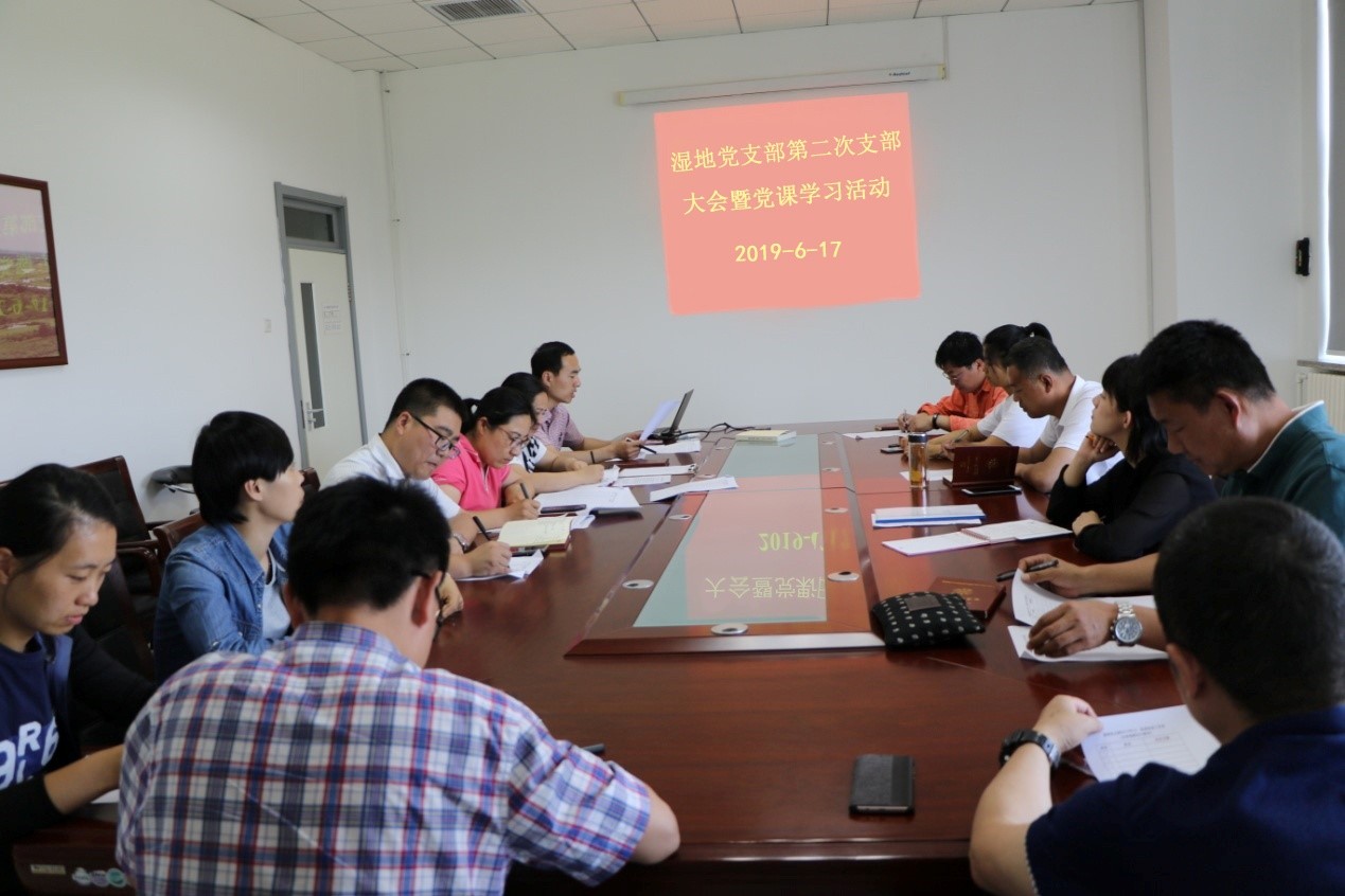 宮超帶領支部黨員共同學習了《習近平關于“不忘初心、牢記使命”重要論述選編》,宣讀了習近平同志在二〇一九年春季學期中央黨校中青年干部培訓班開班式上的講話要點:廣大干部特別是年輕干部要做到信念堅、政治強、本領高、作風硬。隨后,濕地黨支部紀檢委員李曉宇同志宣貫中共中央辦公廳國務院辦公廳印發的《關于進一步弘揚科學家精神加強作風和學風建設的意見》。會議還就濕地黨支部6月工作安排進行了討論。