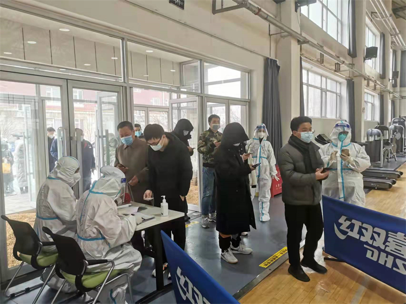 黨員干部帶頭做志愿服務(wù),配合社區(qū)防疫人員組織所內(nèi)職工及家屬、研究生開展核酸檢測(cè)。
