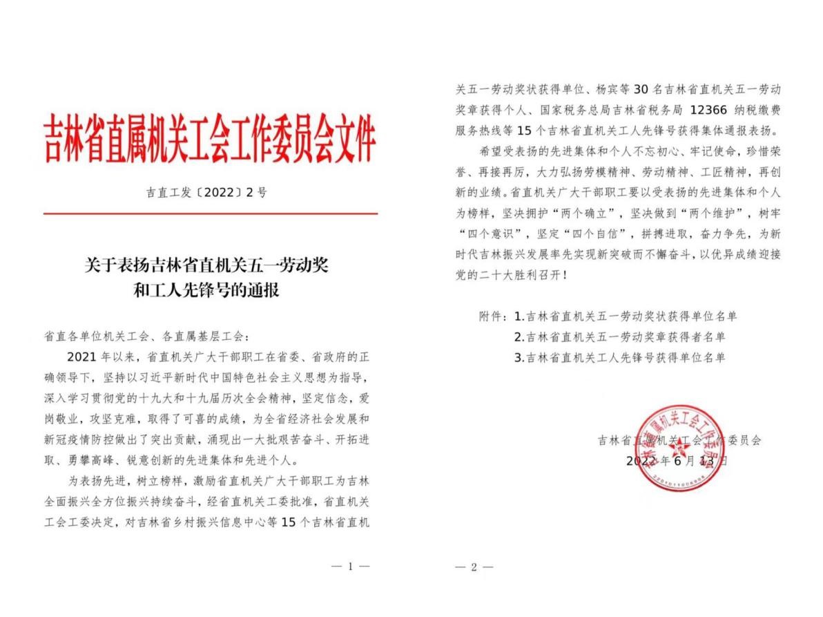 為表揚先進(jìn),樹立榜樣,激勵省直機關(guān)廣大干部職工為吉林全面振興全方位振興持續(xù)奮斗,經(jīng)省直機關(guān)工委批準(zhǔn),省直機關(guān)工會工委決定,對15個吉林省直機關(guān)五一勞動獎狀獲得單位、30名吉林省直機關(guān)五一勞動獎?wù)芦@得個人、15個吉林省直機關(guān)工人先鋒號獲得集體通報表揚。東北地理所獲得吉林省直機關(guān)五一勞動獎狀。