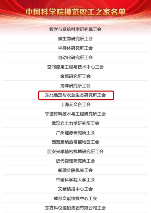 為深入職工之家建設,激發基層工會干部積極性,促進基層工會工作創新發展,中國科學院工會組織開展了中國科學院模范職工之家等評選活動。近日,獲得表彰的集體和個人名單公布,全院共20個集體獲得“中國科學院模范職工之家”稱號,東北地理所工會位列其中,獲此殊榮。