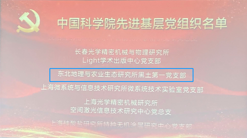 為進一步激勵廣大黨員、黨務工作者和基層黨組織不忘初心、牢記使命, 創新實干、奮勇爭先,中國科學院在全院開展優秀共產黨員、優秀黨務工作者和先進基層黨組織評選表彰工作。此次全院共評選出優秀共產黨員100名、優秀黨務工作者49名、先進基層黨組織49個。中國科學院東北地理與農業生態研究所馮獻忠研究員榮獲“中國科學院優秀共產黨員”稱號,黑土第一黨支部榮獲“中國科學院先進基層黨組織”稱號。
