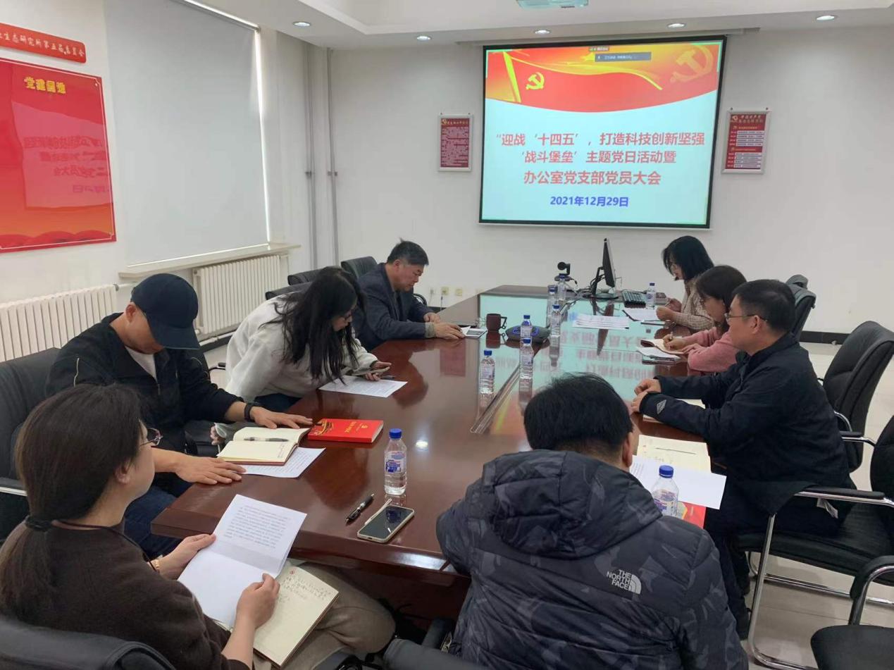 12月29日,辦公室黨支部召開支部黨員大會,開展“迎戰‘十四五’,打造科技創新堅強戰斗堡壘”主題黨日活動,支部10余名黨員參會,會議由支部副書記毛之夏主持。