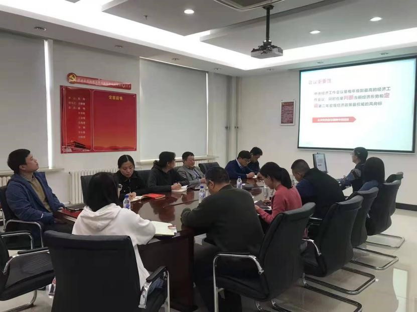 李爽領學了《中央經濟工作會議精神》,重點解讀了會議精神中科技創新、成果轉化和基礎研究中的重要內容。支部黨員結合本職工作,分享了會議精神中供給側改革、國家戰略科技力量等方面的思考和體會。