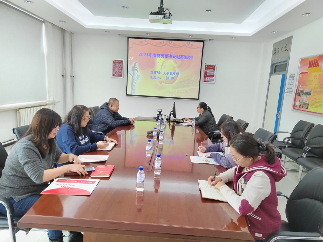 郭琳從成績清單、問題清單、任務清單三個方面向支部全體黨員詳細匯報了人事黨支部2021年度工作情況,同時匯報支部班子履職情況。在匯報成績的同時重點分析了支部工作存在的問題和不足,提出2022年度工作重點。與會黨員針對存在的問題和不足,結合2022年工作重點進行討論,提出工作意見和建議。2022年,人事黨支部在做好理論學習的同時,將更多地增加現場實踐學習;繼續開展普通黨員講黨課,與其他黨支開展聯學共建;結合人事教育處工作開展相關學習和討論,將本職工作與基層黨建工作相融合。