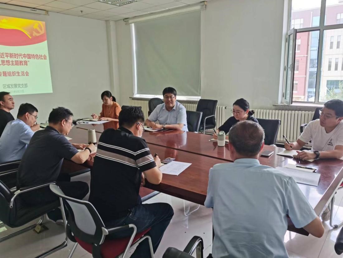 8月25日,區域發展黨支部在綜合樓三樓會議室召開學習貫徹習近平新時代中國特色社會主義思想主題教育專題組織生活會,會議由支部書記李鶴主持,紀委書記項尚到會指導,全體支部黨員參會。
